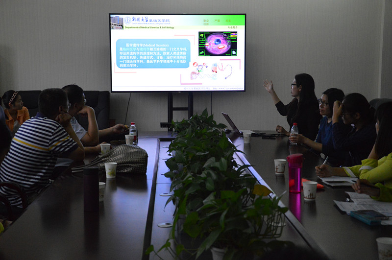 宣讲会上,臧明玺教授、贺颖副教授、涂会引副教授、王中全教授分别就郑州大学基础医学院生物化学与分子生物学系、医学遗传与细胞生物学系、生理学及神经生物学系、病原生物学作简要介绍,从专业简介、学科队伍、人才培养、生活风采、考研科目等五个方面进行宣讲。臧明玺教授强调郑州大学基础医学院尤为重视师资队伍建设,大批海归教师、国家级教学与科研平台及省级重点研究机构都是其亮点。贺颖教授表示医学遗传学是临床医学与遗传学相互渗透的一门交叉学科,是医学科学领域中十分活泼的前沿学科;医学遗传学拥有一支年龄、学历、知识结构合理的学科队伍,具有较强的科研能力及团队合作精神。王全中教授指出近些年寄生虫病的发病人群由“贫穷”转为“富贵”,因食品卫生等原因,发病率有所增加,对于寄生虫病的研究也需进一步深化。王全中教授以契合学生需要的内容、幽默诙谐的风格引起了在场学生的浓厚兴趣。最后,四位专家耐心地为在场学生答疑解惑,活动在轻松融洽的和谐氛围中圆满结束。