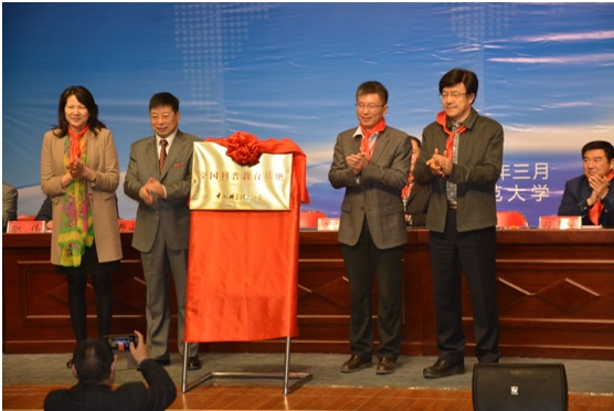 3月20日,在第30届河南省青少年科技创新大赛开幕式上,河南省科协曹奎书记、霍金花主席和我校郑邦山书记、常俊标校长在音乐厅共同为河南师范大学生物标本馆——全国科普教育基地揭牌。河南师范大学生物标本馆于2014年6月被评为2015-2019年全国科普教育基地,并在2015年年度工作考核中获得百家优秀科普教育基地。3月19日,生物标本馆接待参赛学生前来参观;3月20日,接待科技创新大赛专家领导张铁岗院士、曹奎书记、郑邦山书记、陈广文副校长前来参观,参观结束后中国工程院院士张铁岗院士为标本馆题词——淡泊明志、宁静致远、尚德诚信、笃行慎思,标本馆的改造项目受到领导及学生的一致好评。为更好的科普生物知识,服务公众,在院领导和馆长的带领下,标本馆全体工作人员会再接再厉,为标本馆再创辉煌!