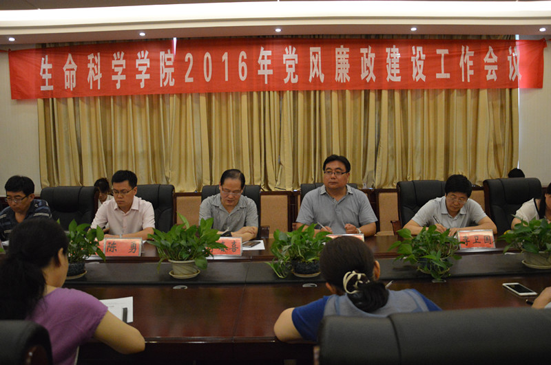 6月20日下午,生命科学学院在生物西楼212会议室召开2016年党风廉政建设工作会议。学院全体班子成员、教工党支部书记及科级干部参加了此次会议。会议由院党委副书记陈勇主持。