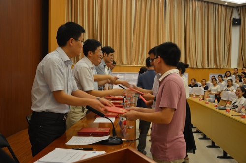 李春喜院长首先宣读学院班主任、兼职辅导员聘任名单,康海军副部长宣读《班主任工作职责》。随后,与会领导为各位班主任、兼职辅导员颁发聘书.