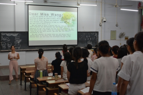 在这个特殊的节日里,为体现同学们对任课老师感恩之情,学院2015级本科生三支部全体同学在英语课堂上为老师送去真诚的祝福和由衷的感谢。同学们制作简约而不失精美的板报和图片,并集体朗诵英语感恩信,感谢老师在一年多以来对自己生活和学习等方面上给予的帮助,祝福老师身体健康、事事顺利、教师节快乐。
