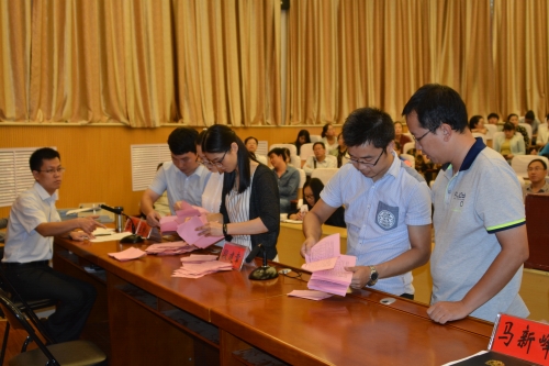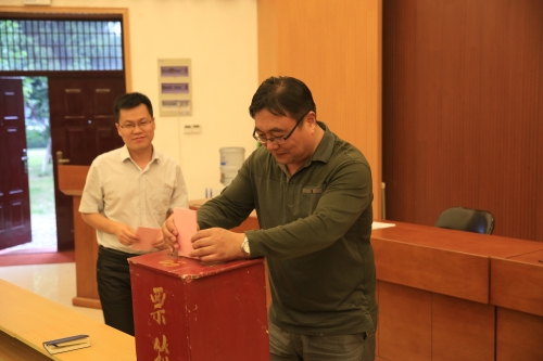 段建章同志宣读《中共河南师范大学生命科学学院委员会选举办法》,介绍新一届党委委员候选人基本情况。在表决通过总监票人、监票人、总计票人、计票人名单后,与会党员投票选举产生了新一届院党委委员。