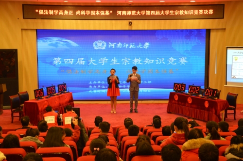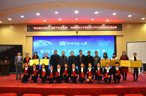 本届大学生宗教知识竞赛由校稳定办、党委学工部主办,生命科学学院承办,以“倡法制学高身正 尚科学固本强基”为主题,旨在普及宗教知识,引导大学生树立正确的马克思主义宗教观和增强学法、遵法、守法、用法意识,提升大学生正确认识和对待宗教问题的能力。比赛自11月7日启动,12月4日结束,分为四期网络竞赛和现场比赛两个部分,活动以赛促学,吸引我校近4.5万人次学生积极参与,全校学生网络答题总分、答题质量及学生活跃度均居于全省高校前列。比赛在普及宗教知识的同时,也成为校园文化建设的一道靓丽风景,在全校营造了“学习宗教、认识宗教、抵制邪教、崇尚科学”的良好氛围。
