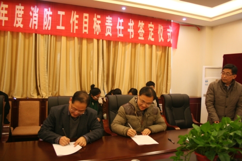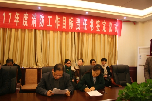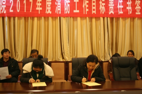 马新峰书记、李春喜院长分别与各教研室(科室)负责人、党支部书记、辅导员签订了一级《2017年消防安全责任书》;科室代表杨献光、导师代表姜丽娜、本科生辅导员代表王芳分别与科室人员、研究生代表、本科生代表签订了二级《2017年消防安全责任书》。