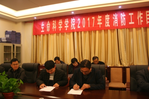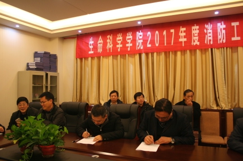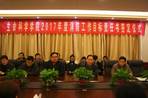 李春喜院长首先讲话,强调消防工作关系到全院师生的生命及财产安全,签订消防安全责任书的目的在于贯彻落实学院消防安全“谁主管,谁负责”的原则,进一步明确 “一把手”负总责、“谁主管、谁负责”和“一岗双责”的安全责任制,把安全管理目标和责任落实到每一个岗位,每一个环节,每一名教职工,确保学院安全管理全覆盖、无死角、无盲区,强化大家的消防安全工作意识,切实把消防责任落到实处,确保学院师生人身安全及财物安全,为学院的发展提供良好、安全的环境。此次学院签订消防安全责任书,是落实2016年12月21日学院第二届教代会第五次全体会议通过的《生命科学学院消防管理办法》,以后将成为学院的一个常项工作,一年一签订。