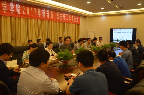 为进一步学习贯彻落实全国、全省高校思想政治工作会议精神,落实学校关于班主任工作的督导考核工作,进一步加强我院学生工作队伍建设,总结经验,提升工作,更好地落实立德树人这一根本任务,5月5日上午,我院2017年辅导员、班主任工作推进会在生命科学学院二楼会议室举行。学院党委书记马新峰、院长李春喜出席会议,学院各年级专兼职辅导员、班主任参加推进会,推进会由生命科学学院党委副书记陈勇主持。
