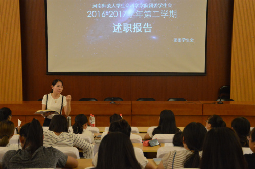 9月1日下午3点,我院在生物报告厅举办2016—2017年度第二学期团委学生会述职报告会,团委学生会各部门成员做述职报告,院团委书记兼2016级辅导员王芳听取了本次报告。