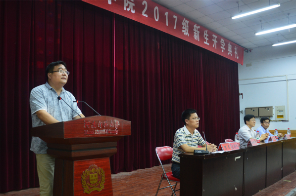 9月10日晚,生命科学学院在万人餐厅多功能报告厅举行2017级新生开学典礼。学院党委书记马新峰,院党委副书记陈勇,副院长李卫国、李建军,学院全体科级干部、教师代表、专兼职辅导员及学院2017级研究生和本科生共同参加本次开学典礼。典礼由院党委副书记陈勇主持。