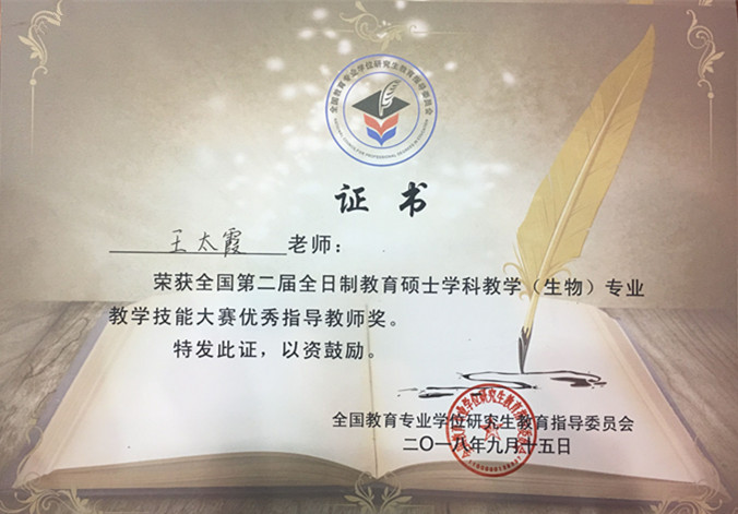 9月16日,第二届全国全日制教育硕士学科(生物)专业教学技能大赛在华中师范大学正式落下帷幕。来自全国各地55所高校的88名选手参加了此次决赛。我校生命科学学院17级学科教学(生物)专业硕士孙莹同学在本次比赛中荣获二等奖,其指导教师王太霞教授荣获优秀指导教师奖。