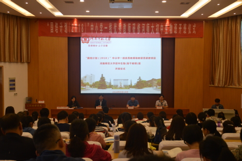 9月18日上午,我院承办的“国培计划(2018)”中小学一线优秀教师研修河师大初中生物班于生物报告厅举行开班仪式。河南师范大学党委副书记陈广文、继续教育学院院长武军会、生命科学学院党委书记丁笑生及国培相关负责人出席本次开班典礼,来自全国各地的100名初中生物骨干教师参加本次开班典礼。开班典礼由继续教育学院副院长聂君涛主持。