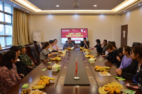 为体现学院对新疆籍少数民族学生的关怀,教育学生爱国爱党爱社会主义,在国庆节来临之际, 9月28日下午,生命科学学院举办“迎国庆、感党恩”新疆籍少数民族学生座谈会。学院相关负责人、各年级专兼职辅导员,全院22名新疆籍少数民族学生参加本次座谈会。座谈会由院党委副书记陈勇主持。