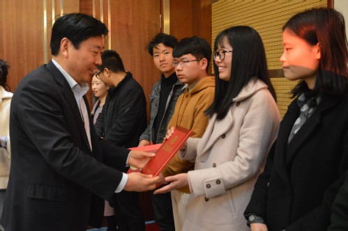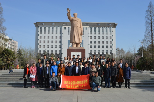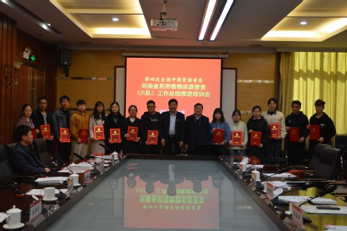 第四次全国中药资源普查河南省专家委员会委员、普查队六队长、生命科学学院副教授李建军围绕药用植物的野外调查、药材应用市场调查和传统用药知识调查等方面,总结了普查六队在2018年普查工作中的完成情况,并对接下来的相关工作做出进一步的安排部署。普查队学生志愿者代表、生命科学学院学生赵英杰分享了自己在2018年普查实践中的感悟与收获。校团委书记孙冬青宣读了2018年我校暑期三下乡社会实践活动之生命科学学院“中药普查促发展青春献力新时代”实践调研团优秀学生获奖名单。陈广文、陈随清为获奖学生颁发证书并合影留念。