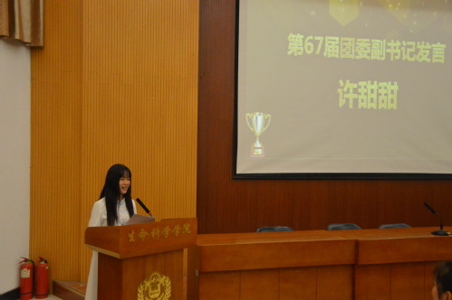 大会在第67届院团委、学生会工作总结视频中拉开帷幕。大会伊始,院团委副书记许甜甜、学生会主席王晓安依次上台发言,她们回顾并分享了自己近两年的工作经历,对大家一如既往的支持和理解表示真诚的感谢,并希望第68届团委、学生会全体成员能够不忘服务初心,积极发扬“团结、求实、进取、创新”精神,共同为学院学生工作的发展献计献策。
