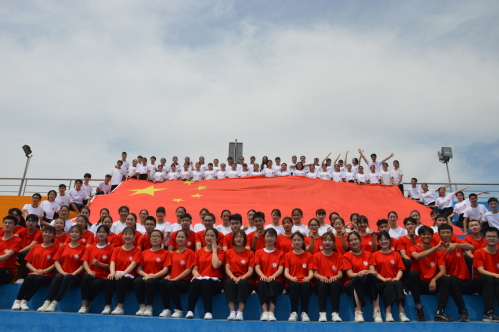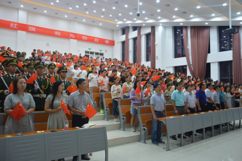 观看现场,学生们手执国旗,全程认真观看,不时热泪盈眶,为飘扬的五星红旗和新中国成立七十年来的高速发展感到无比骄傲与自豪,其中,2017级生物科学专业王雯雪颇有感触地说道:“五星红旗每天迎着黎明的曙光在华夏大地每一个地方徐徐升起,不仅记录着中华民族不屈的奋斗历程,也将见证中华民族伟大复兴的美好时刻。五星红旗是我们永远的骄傲!”活动最后,全体师生跟随节目,起立齐唱《歌唱祖国》,激昂的歌声和挥舞的国旗让观看会场成为爱国的海洋。