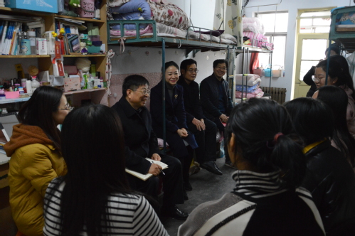 正值考试来临之际,常校长走进2016级学生宿舍,仔细询问她们的备考状态和复习进度,并围绕学生日常生活、考研奋斗目标、人生理想追求等方面与每位学生进行亲切交流,鼓励她们要相互激励,共同进步。当谈到师大浓厚的学风、领导老师的鼓励与帮助时,常校长表示,学校将会始终坚持以学生为中心,不断完善服务体系,充分结合学生复习节奏,适时帮助学生调整心态,全力为学生考研保驾护航,永远做学生们最坚实的后盾。随后,常校长就备战考研和未来发展向学生们提出三点建议:一是要注重学习方法,劳逸结合,以从容不迫的良好心态迎接考试;二是要加强专业知识,激发专业兴趣,明确学习和努力的目标;三是要树立远大理想,不懈奋斗,展现新时代青年的使命担当。最后,常校长祝愿同学们考研凯旋,并与同学们相约考研后再见面长谈!