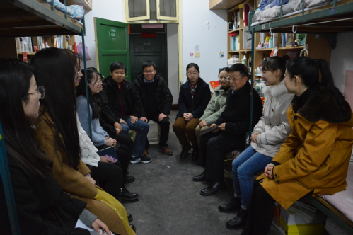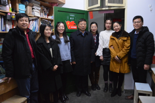 12月30日下午,常俊标校长再次来到他联系的生命科学学院学生宿舍,兑现12月18日他第一次进宿舍时跟学生的承诺:等学生考完研后再到宿舍来。学院院长余国营、党委副书记陈勇、团委书记兼2016级辅导员王芳陪同。