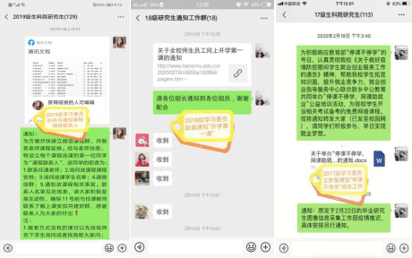 学院按照由研究生院、教务处和现代教育技术中心联合下发的《河南师范大学关于做好延期开学期间任课教师线上教学培训工作方案》要求,于本月3日起对学院研究生教学团队进行专业培训指导,全体任课教师积极学习网上教学方法,认真备课。我们以超星学习通、雨课堂、腾讯会议和爱课程等主要教学平台为依托,网络中断时采用微信会话和视频等适时补救,同时也灵活利用网上优质慕课资源,变劣势为优势,使课堂内容更为丰富。