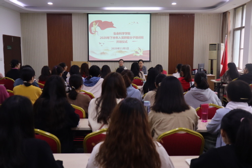 11月1日上午,生命科学学院2020年下半年入党积极分子培训班开班仪式在生物西楼206举行,生命科学学院院党委委员、副院长姜丽娜,院副科级组织员马翠及60名入党积极分子参加本次仪式。仪式由院党委组织员马翠主持。