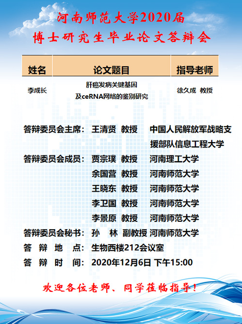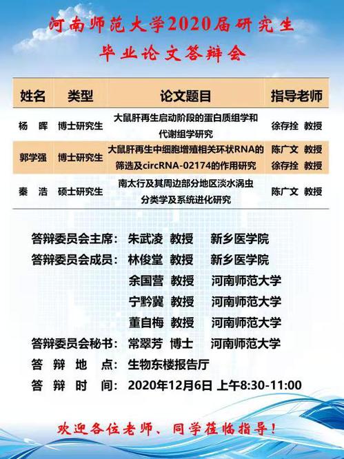 生命科学学院2020年下半年申请学位人员论文答辩将于近期进行,欢迎广大师生参与指导!