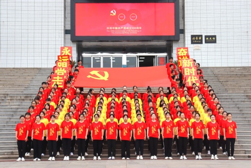 各年级学生党员、入党积极分子、共青团员代表100余人,结合建党百年的主题进行了队形设计,拍摄出献礼建党百年系列照片,用镜头定格了以红黄两色分出的“100”字样、手持巨幅党旗彰显了生科青年“永远跟党走,奋进新时代”坚定信心。“唱支山歌给党听,我把党来比母亲,母亲只生了我的身,党的光辉照我心。”生科青年将对党的无比忠诚和热爱融入到歌声中,良好地展现出了生科青年对全面建设社会主义现代化强国新征程的昂扬姿态。
