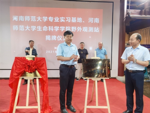 随后,学院与黄柏山林场、黄柏山生态文明教育中心签订了《河南师范大学专业实习基地实习协议》,余国营与裴军共同为基地和观测站揭牌。