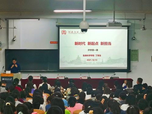 10月13日下午,生命科学学院2021级新生“开学第一课”在新五五四楼101教室举行,学院党委书记丁笑生担任主讲,学院全体2021级本科生参加。