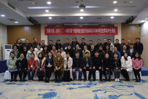 12月16日上午,“国培计划(2021)”——农村骨干教师能力提升培训项目河南师范大学省级和市级骨干教师培训初中生物班开班仪式在新乡市和颐鑫地酒店7楼会议室举行。生命科学学院院长余国营、党政办公室主任杨刚刚以及班主任团队出席。开班仪式由杨刚刚主持。