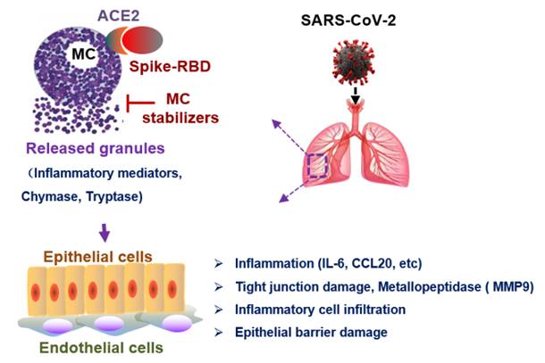 新冠病毒通过诱导肺部肥大细胞脱颗粒诱发肺上皮细胞炎症和导致肺损伤