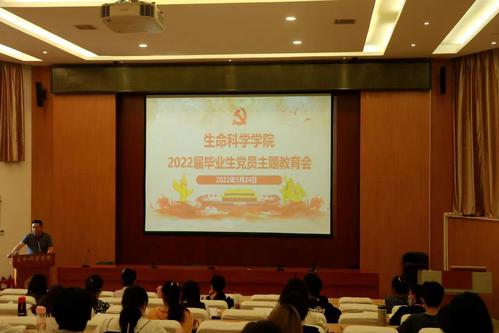 为强化毕业生党员修养,永葆先进性和纯洁性,5月24日下午,生命科学学院在生物报告厅采取线上线下相结合的方式举办2022届毕业生党员主题教育会。学院负责人和全体毕业生党员60余人参加。会议由党支部书记张伯伦主持。