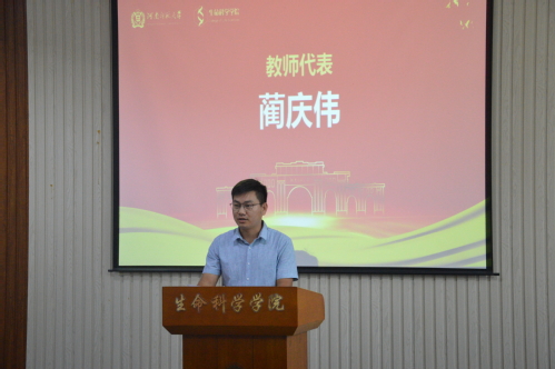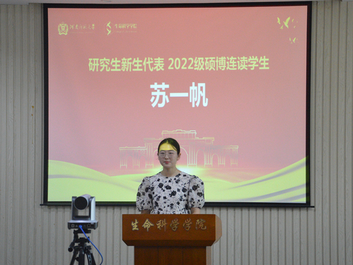 在庄严的国歌中,生命科学学院2022级新生开学典礼正式拉开帷幕。学院院长余国营教授对2022级新生的入学致以热烈的欢迎,并向新生阐述大学使命及大学学习的本质,指出学生应当自立自律,戒骄戒躁,同时对新生提出三点希望:一是保持勤奋学习的状态,持之以恒,天道酬勤;二是塑造完善的性格,学会包容及自我完善;三是抓住机会,学以致用,成就更好的自己。接着,教师代表蔺庆伟、学院学生会主席团成员代靓丽依次发言。其中,蔺庆伟表示希望新生像植物一样,向下扎根,向上结果;像动物一样,迅速适应环境,向前奔跑;像微生物一样,注重团队和整体。最后,2022级研究生新生代表苏一帆、本科生新生代表李铮然表达对学院的肯定及喜爱,并表示在日后的学习过程中会脚踏实地,锲而不舍,严谨务实。