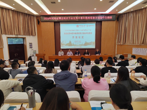 10月9日上午,2024年河南省义务教育师资薄弱环节改善暨中小学教师素质提升工程河南师范大学万名优秀中青年教师培育计划高中生物班开班仪式在生物报告厅举行。生命科学学院院长余国营及学院培训管理团队成员出席会议,开班仪式由副院长宋军丽主持。