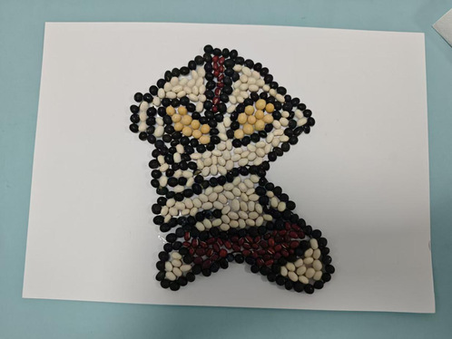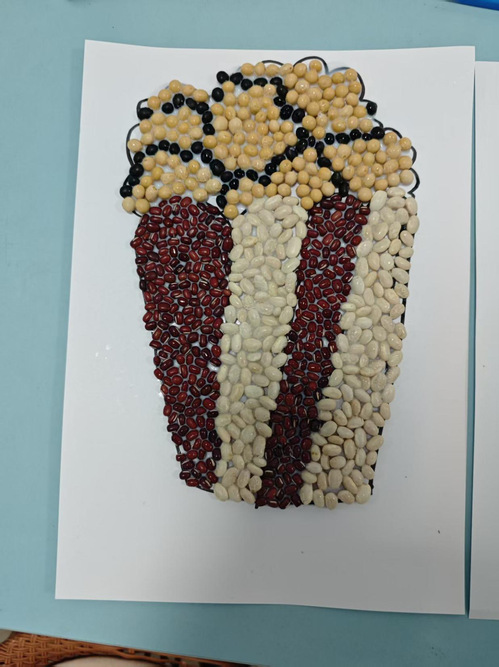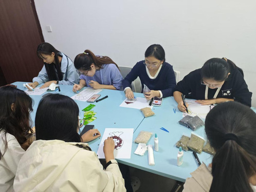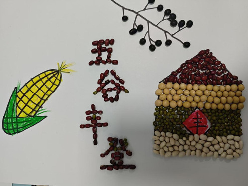 活动在浓厚的文化氛围中拉开帷幕。在“创意五谷画”制作现场,参与者们以五谷杂粮为笔墨,充分发挥专业特长与艺术想象力。创作主题开放而包容,参与者们精心构思,用不同颜色的谷物层层铺叠,描绘出稻浪翻滚、瓜果满枝的丰收田园景象,粘贴出活泼可爱、妙趣横生的卡通形象,制作出蕴含吉祥寓意的“五谷丰登”传统图案。在文化讲解与技巧分享环节,同学们分享构图、选材、配色、粘贴等实用技巧,确保作品能够稳固而美观,深入浅出地讲述五谷画这一独特艺术形式背后的文化故事,进行了深度的传统文化熏陶。这不仅是一次艺术创作,更是一堂“行走的”思政课,让同学们在动手实践中切身感受到农耕文明的不朽智慧。