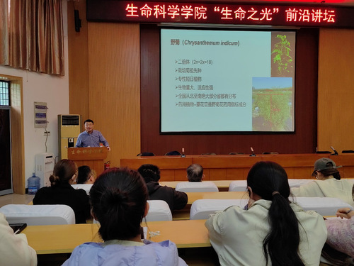 10月19日下午,应生命科学学院邀请,中国农业大学马超教授莅临我校,作题为“菊花黄酮合成与生态适应性的遗传学基础”的学术报告。河南省道地药材保育及利用工程技术研究中心骨干教师和学院师生共百余人参加。