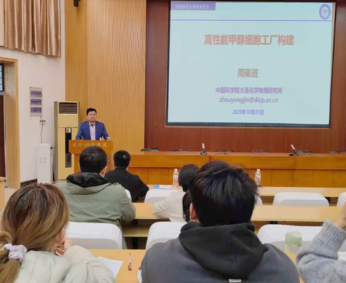 10月31日上午,应生命科学学院邀请,中国科学院大连化学物理研究所周雍进研究员莅临我校,做客“生命之光”前沿讲坛,作题为“高性能甲醇细胞工厂构建”的学术报告。功能微生物绿色转化技术河南省工程实验室骨干教师和学院师生百余人参加。
