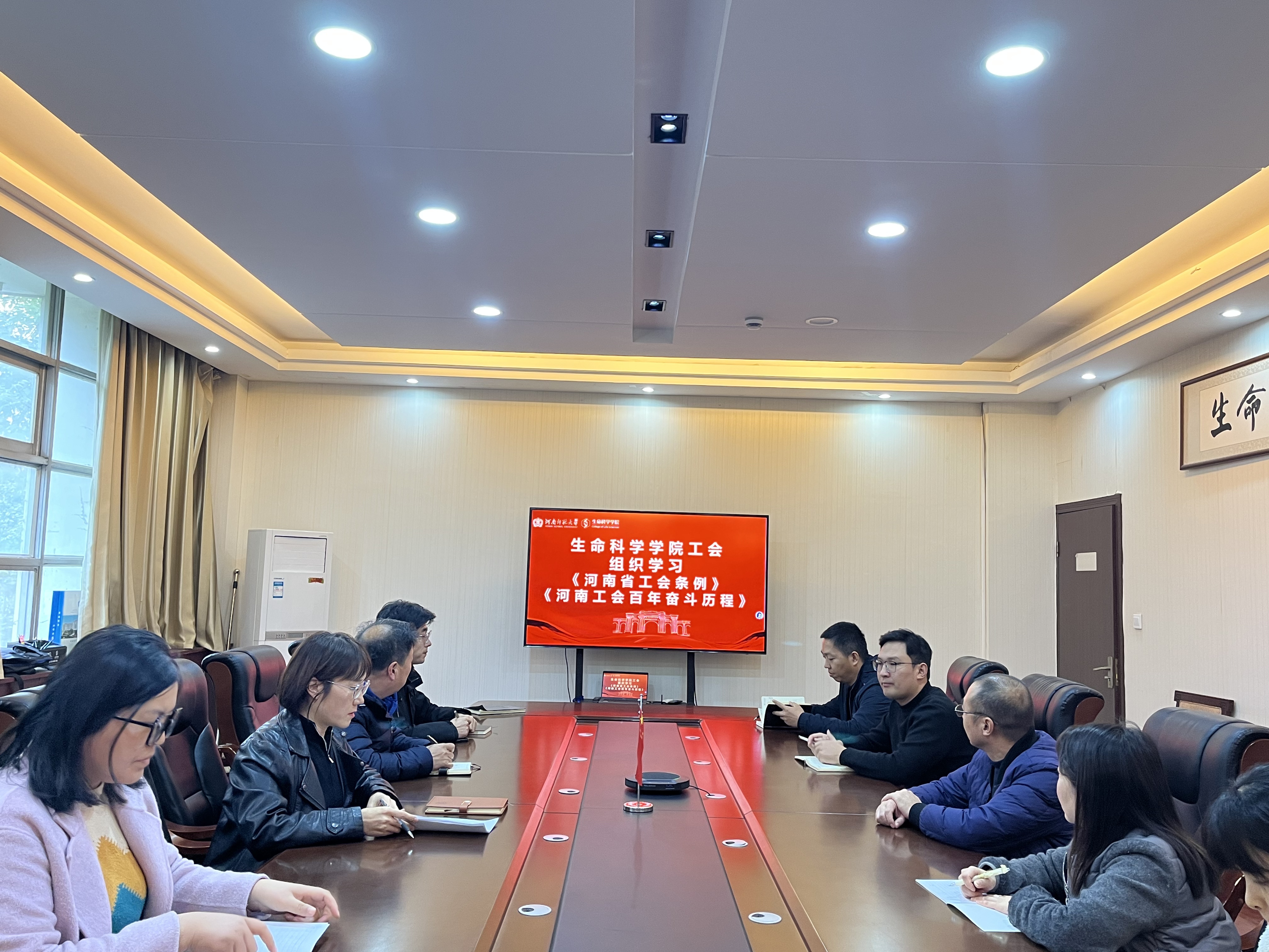 为深入学习宣传贯彻《河南省工会条例》,系统回顾河南工会百年奋斗历程,切实提升工会干部履职能力,11月4日下午,生命科学学院分工会于生物西楼212会议室组织开展专题学习会。学习会围绕《河南省工会条例》及《永远跟党走奋进新征程——河南工会百年奋斗历程》核心内容。院分工会委员、小组长参加会议,学习会由学院副院长、工会主席宋军丽主持。