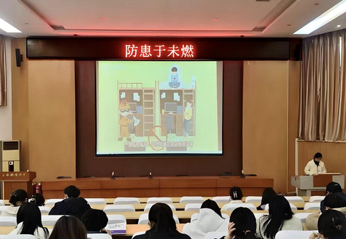 活动伊始,2024级学生代表邬东丽通过展示触目惊心的火灾现场图片和极具警示意义的案例视频,围绕校园火灾常见隐患排查、初起火灾扑�