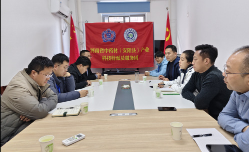 2025年11月29日,河南省中药材(安阳县)产业科技特派员服务团团长教授赵喜亭与平顶山市林业局林业技术工作站站长张舸一行共赴河南新东医药科技有限公司(简称新东医药),围绕在平顶山地区引种药用菊花作为林下经济项目的可行性、技术路径及产业发展前景进行了座谈会。服务团成员王添乐随行,新东医药总经理张振科、副总经理郭红飞及中药材种植部门经理刘子龙参会。