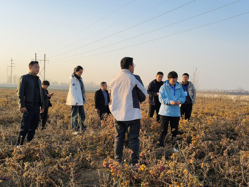张舸对服务团的技术支持表示感谢,并针对引种药用菊花的技术要求、产品采收加工等问题向服务团和新东医药相关负责人进行了咨询。期间大家详细探讨了土壤适配性、种苗供应、技术培训、质量标准及品牌打造等具体问题,并初步达成合作意向:下一步将在平顶山地区开展小规模引种,同步组织农技人员培训,为后续规模化推广奠定基础。