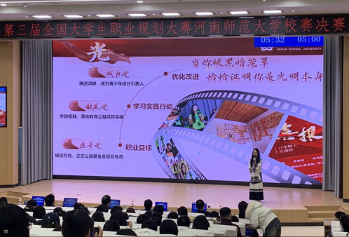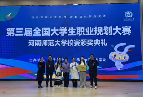 第三届全国大学生职业规划大赛河南师范大学校赛决赛于12月27日在东区实训楼举行。经过学院初赛、校级复赛、决赛的层层选拔,我院陈玉莹、李佳益两位同学最终脱颖而出,在决赛中分获金奖与铜奖的优异成绩。