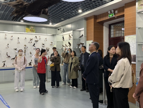 在讲解员的引导下,考察团依次走进鱼类与两栖爬行动物展厅、鸟类展厅、昆虫展厅、哺乳动物展厅等展区。大家边走边看、认真聆听,详细了解各类珍稀动植物标本背后的科学知识、生态价值与保护意义,深入了解博物馆在科普教育、研学实践、校外课堂建设等方面的资源优势与工作成效。