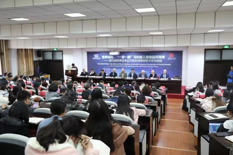 11月7日,“世界格局、‘一带一路’与构建人类命运共同体——第九届世界社会主义论坛河南师范大学分论坛”在勤政楼第四会议室举行。我校党委书记赵国祥,党委副书记陈广文,中国社会科学院马克思主义研究院副院长、人事局副局长金民卿,中国社会科学院世界社会主义研究中心副主任兼秘书长王立强等出席开幕式。原东德统一社会党总书记埃贡·克伦茨、格鲁吉亚统一共产党中央第一书记捷穆尔·皮皮阿以及来自意大利、俄罗斯、古巴、澳大利亚等国外学者,国内专家学者,驻新高校学者和河南师范大学师生代表等150余人参加了论坛。