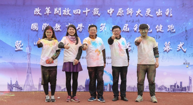 11月10日上午,国际教育学院在东校区举办了以“改革开放四十载,中原师大更出彩”为主题的第二届彩色健跑暨“国际青年汇”开幕式。我校党委学工部副部长、学生资助服务中心主任赵红杰,国际教育学院党总支书记李秋发,党总支副书记白丽,团委书记韩舒,2018级辅导员孔若阳,兼职辅导员与近200名同学共同参加。