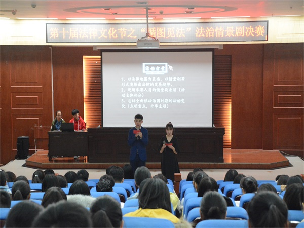 为向学生展示我国近年来取得的法治成就,增强学生法治观念,11月20日晚,由我校主办、法学院承办的“循图觅法”法治情景剧活动决赛在模拟法庭展开,法学院副院长于庆生担任此次活动的评委,近300名学生观看此次比赛。