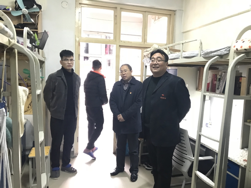 走访过程中,学院领导和辅导员对学生宿舍安全、卫生、设施、文化建设等方面逐一进行了检查,叮嘱在宿舍的同学提升安全意识,克服“网瘾”,养成良好的学习、卫生和作息习惯,气氛温馨而愉快。走访中,学院党总支书记马新峰与学生亲切交谈、嘘寒问暖,指出学生宿舍是大学校园里一个非常微小的“细胞”,建设什么样的宿舍文化对于大学生的成长成才至关重要。马新峰勉励同学们,要强化思想政治引领,以宿舍为抓手建设学习型组织,让宿舍成为学生提高政治觉悟、树立远大理想、坚定崇高信念的学习之地,真正提升宿舍文化育人的实效;要建设积极向上的宿舍文化,培育和弘扬社会主义核心价值观,做到知感恩、讲诚信、行礼仪,形成好学、乐学、善思、修身的生活方式、文明习惯和宿舍文化新风尚;要发挥主人翁精神,凝聚宿舍集体智慧,把约束要求内化为行为自觉,把宿舍建设成“讲学习,讲政治,讲正气,讲团结,讲文明,讲纪律,讲奉献,讲成才”的文明之家。