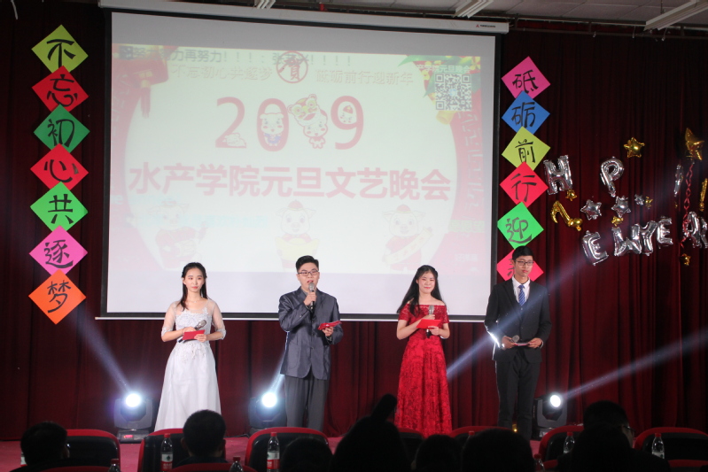不忘初心共逐梦,砥砺前行迎新年。12月25日晚,水产学院在万人餐厅三楼多功能报告厅举办2019年元旦文艺晚会。院党委书记赵有军、党委副书记李保华、副院长李学军、各级辅导员、班主任及任课老师应邀出席,全体2018级同学观看了此次晚会。
