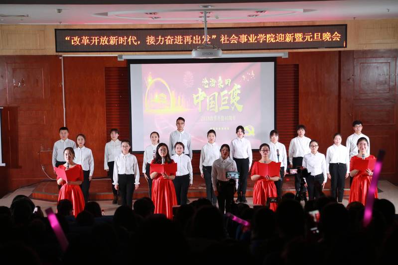 青春激昂拥抱新二〇一九,诗词歌舞献礼改革开放。在新的一年里,社会事业学院全体师生必将笃志求学、奋发有为、扬帆起航,为个人拼搏、为学院建设、为实现中国梦贡献青春智慧和力量。