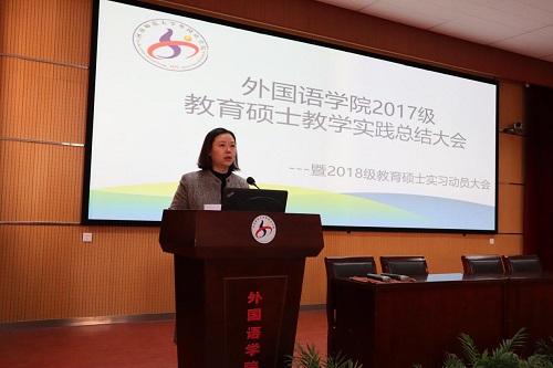 3月15日下午,我院在外国语学院报告厅召开了2017级教育硕士教学实践总结大会暨2018级教育硕士实习动员大会。学科教学(英语)教育硕士校内教育实践指导教师刘国兵、王晔、王彩琴、李素枝、娄宝翠、孙海燕、史晓伟、张军民和2017 、2018级教育硕士全体研究生参加了此次会议。