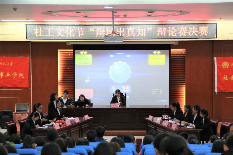 为积极响应学校号召,宣传国际社工日,普及社工知识。3月23日晚,由社会事业学院团委主办,社会工作协会承办的社工文化节系列活动之辩论赛决赛在模拟法庭举行。院党委副书记梁作振、团委副书记田嘉玺、实训办主任谢启文参加此次活动并担任评委,师生代表共200余人共同观看了此次比赛。