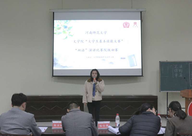 为加强学院学风建设,提高语言运用水平,4月2日,文学院“大学生基本技能大赛”之“双语”演讲比赛院级初赛在崇文楼一楼报告厅举行。学院相关负责人及全体参赛选手到场参加此次活动。