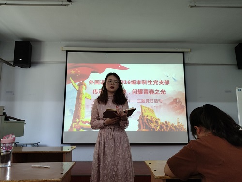 重温五四岁月,拨动时代心弦。5月12日,2016级本科生党支部在外语楼多媒体教室1开展“传承五四精神,闪耀青春之光”主题党日活动。